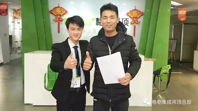 他们通过实地考察格勒吊顶总部,在与招商部工作人员融洽的沟通接触,以及对于公司的整体实力等各方面都非常满意,特别是对公司你开店我投资的创新加盟方式,你开业我送单的O2O战略,这些都让他们很心动,最后成功选择加盟格勒。